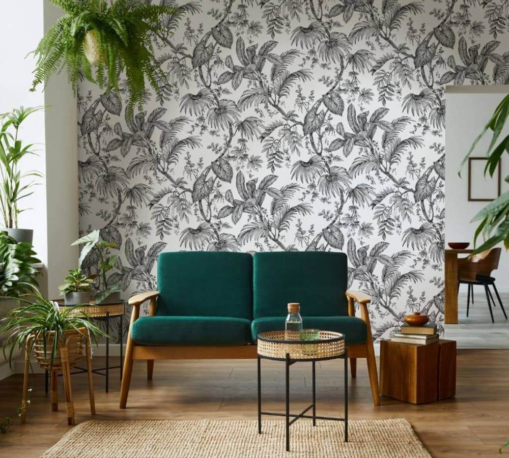 Ieder interieur kan planten gebruiken, maar een interieur met zwart wit behang al helemaal. Een grote kamerplant met prachtige groene bladeren, maakt een zwart wit behang interieur veel frisser en levendiger.